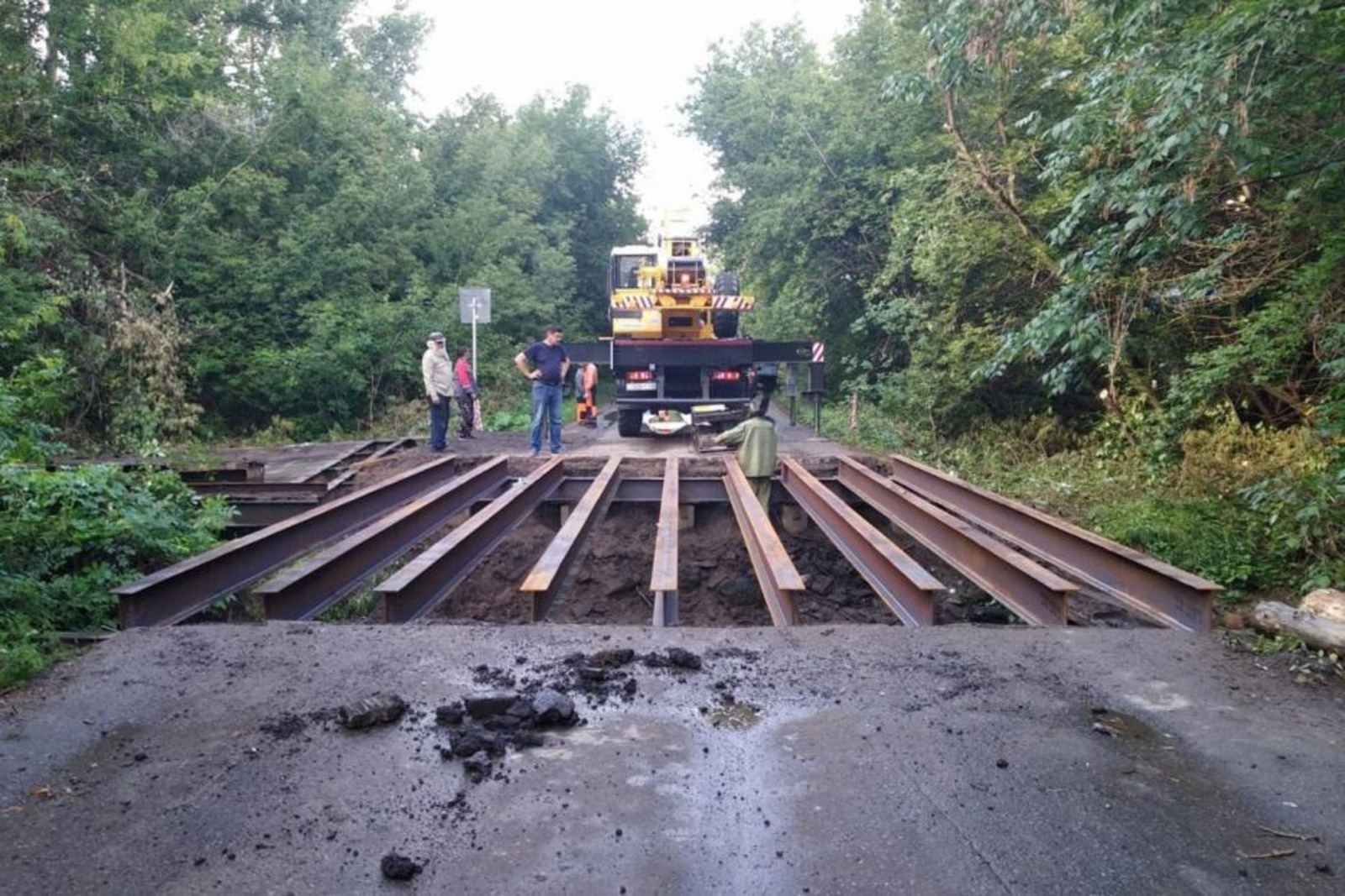 В Уфе продолжается ремонт моста легковой объездной дороги через реку Шугуровку, на пересечении улиц Хетагурова и Перспективной.