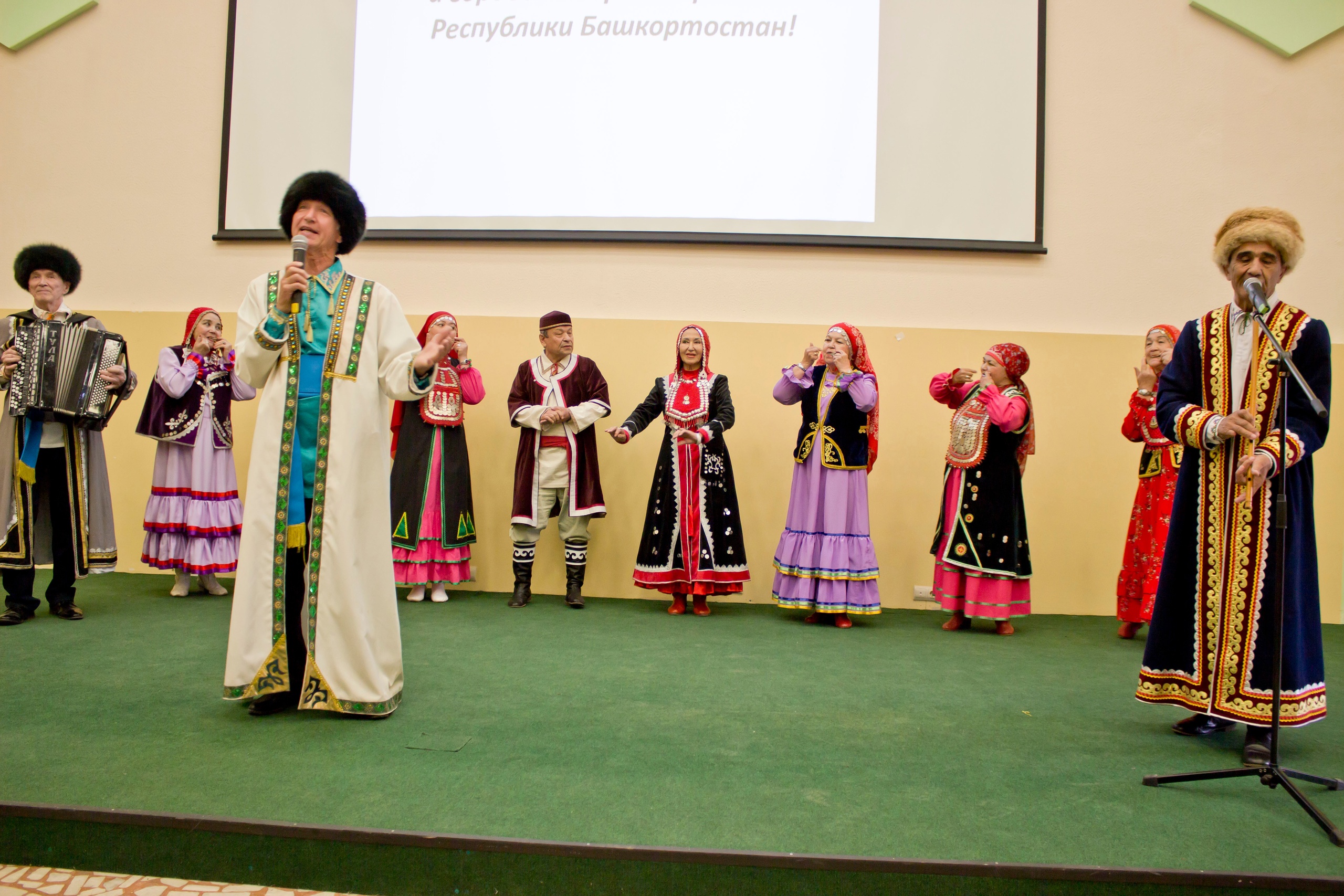 Для собравшихся выступил фольклорный ансамбль «Ауаз» Республиканского центра народного творчества под руководством Заслуженной артистки РБ Насимы Тимировой. Среди артистов была и наша коллега – Заслуженный врач РБ Зайтуна Камалова. Показали свое мастерство студия танца «Звездный путь» (руководитель Лилия Мухамадиева), солистка Нагаевского Дома культуры Гульназ Сабитова, лауреат всероссийских и международных конкурсов, обладатель Гран-при телеконкурса «Байык», руководитель студии башкирского костюма «Селтэр» ДК РЦНТ Фатима Хайретдинова, а также ансамбль «Тулган ай» и ансамбль «Усолька» Красноусольской Центральной районной больницы.