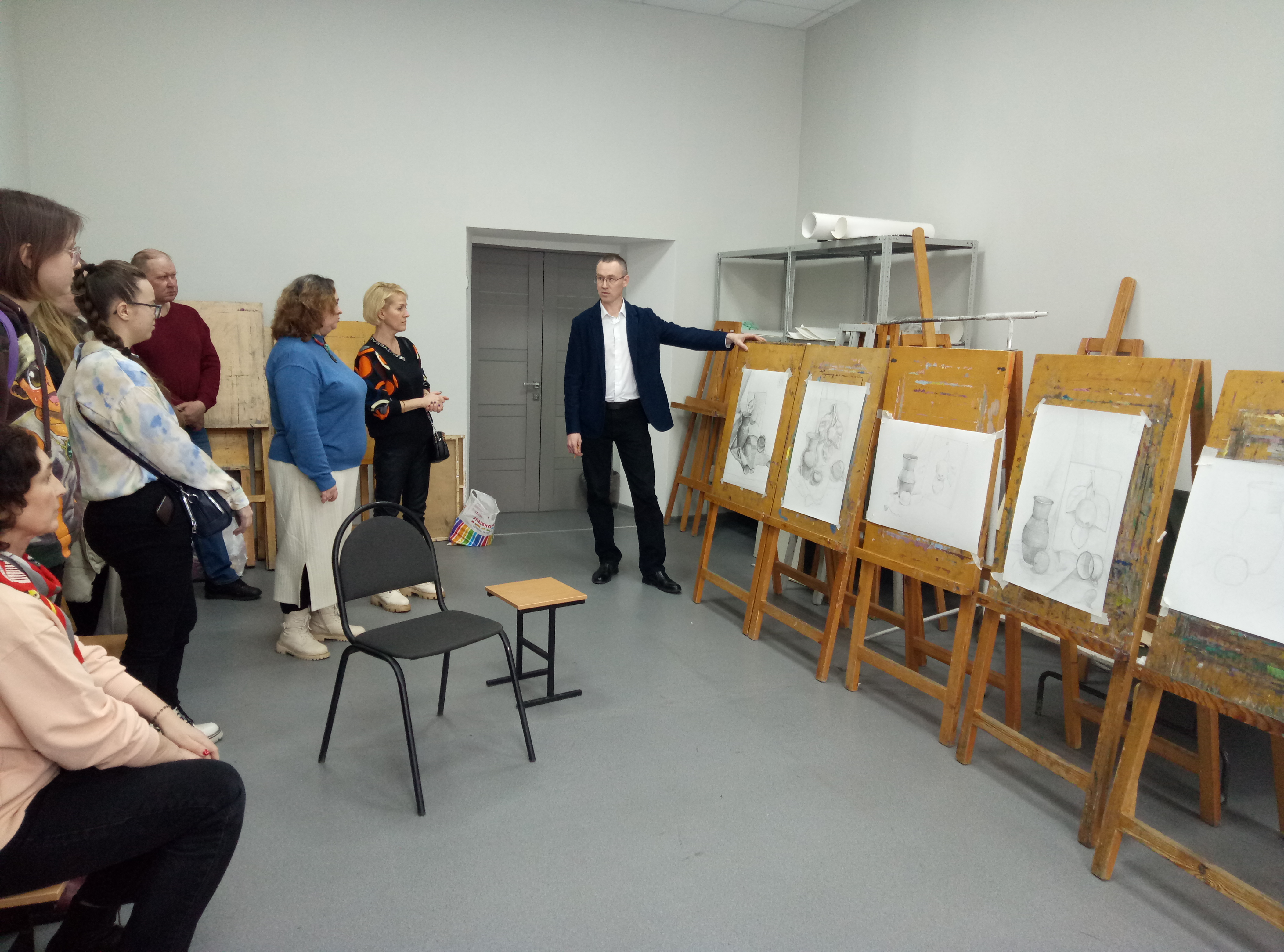 Будущие абитуриенты смогли не только задать интересующие их вопросы, но и сдать пробный творческий экзамен по рисунку. По завершении пробного экзамена преподаватели факультета объяснили критерии оценивания работ и провели детальный разбор ошибок. На просмотре присутствовали родители будущих абитуриентов.