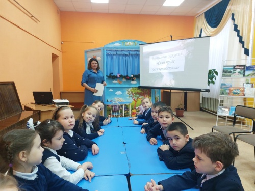 Ведущая рассказала о самых главных достопримечательностях республики. На экране дети посмотрели видеопрезентацию «Семь чудес Башкортостана», узнали, что такое «Золотой список» и что туда входит: памятник Салавату Юлаеву, курай, эпос «Урал-батыр», пещера Шульган-таш, башкирский мед, гора Янган-тау, Красноусольские минеральные источники.