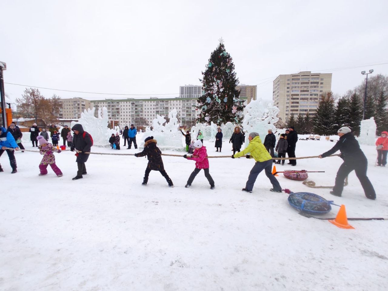 Организаторы проверяли силу и ловкость семей в таких играх, как «Ловкий хоккеист», «Гонщики», «Быстрый спуск», «Снежный бадминтон», «Разминка», «Самый сильный», перетягивание каната.