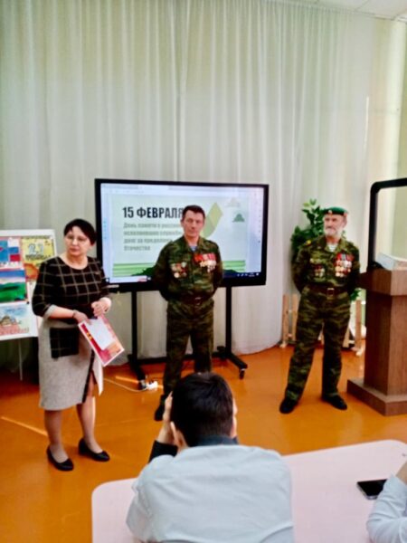 В преддверии Дня памяти о россиянах, исполнявших служебный долг за пределами Отечества, 13 февраля в селе Иглино состоялся тематический урок мужества «Афганистан в нашей памяти» с учениками 6-го класса школы №3 (директор Галия Ахатова). Выступили ветераны Иглинского отделения «Боевого братства», воины-интернационалисты Анатолий Ботвич и Владимир Тетерин. Присутствовали классные руководители Айгуль Губайдуллина, Гузялия Каримова и Эльмира Даянова. Старшие товарищи рассказали о традициях защитников Отечества и своей службе в Афганистане, ответили на многочисленные вопросы.