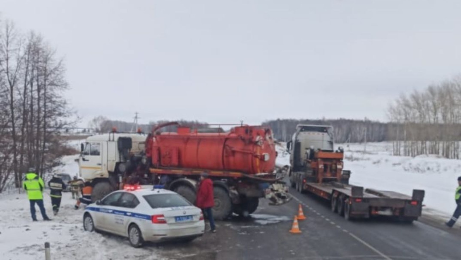 После столкновения «Лады Гранты» и «КамАЗа» 32- летний водитель легковушки и его 36-летняя пассажирка с различными травмами были доставлены в больницу. Есть сведения, что автоцистерна была пустой.