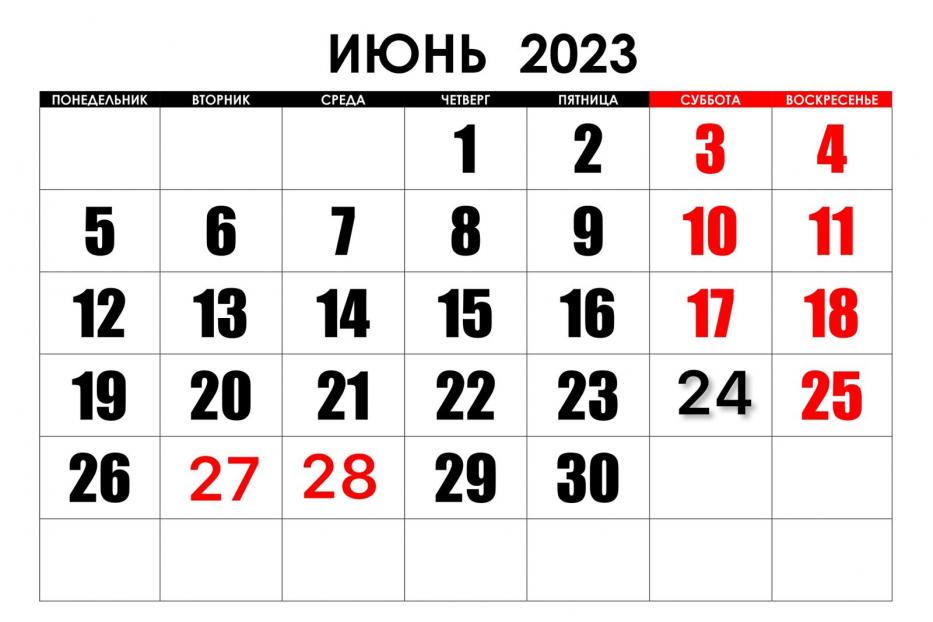 Таким образом, выходными днями при пятидневной рабочей неделе в связи с выходными и праздничным днем являются 27 и 28 июня.