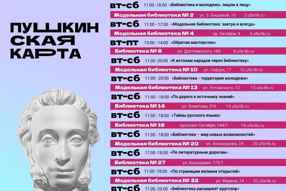 Уфимцев ждет экскурсия по библиотеке «Библиотека и молодежь: лицом к лицу» в рамках федерального проекта «Пушкинская карта».