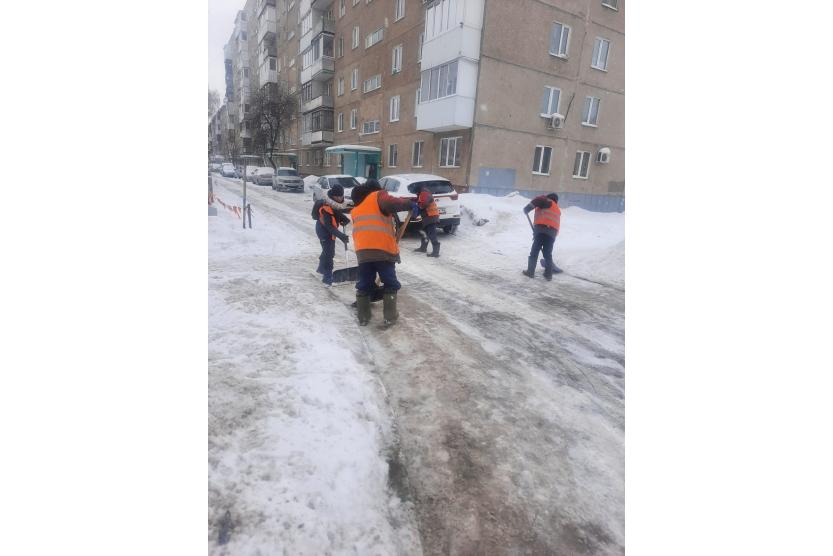 Уборка снега в районе продолжается