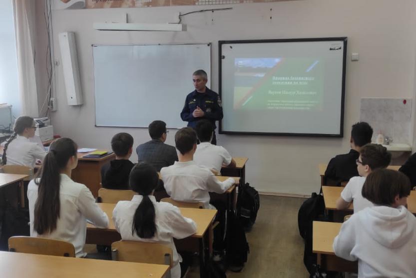 Он объяснил учащимся как вести себя на воде в разных ситуациях, раздал памятки, провёл инструктаж по технике безопасности рядом с водными объектами.