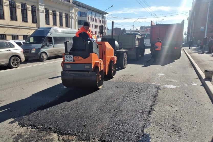 Ямочный ремонт дорог в Уфе ведется с февраля.