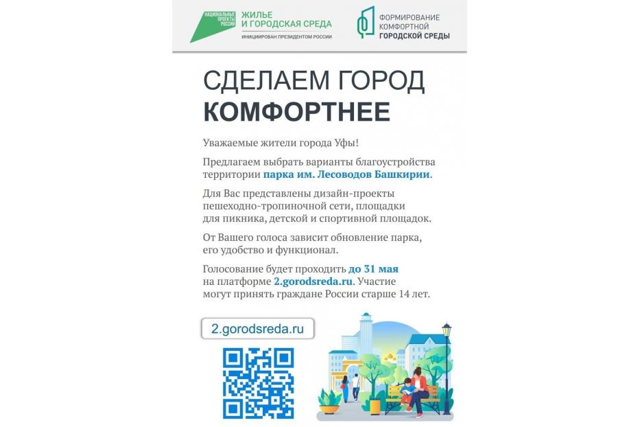 Примите участие во Всероссийском голосовании по ссылке https://02.gorodsreda.ru , зарегистрировавшись через учётную запись на Госуслугах или по номеру телефона. Отдать свой голос можно только за 1 вариант