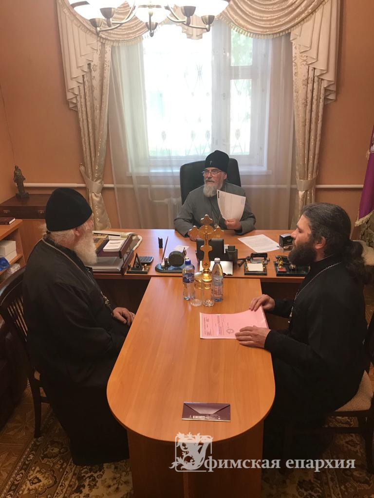 В Нефтекамском епархиальном управлении Владыка провел совещание с Секретарем (Управделами) епархии митр. прот. Алексием Тихоновым, провел прием духовенства и др. посетителей; осуществил необходимую работу с документами.