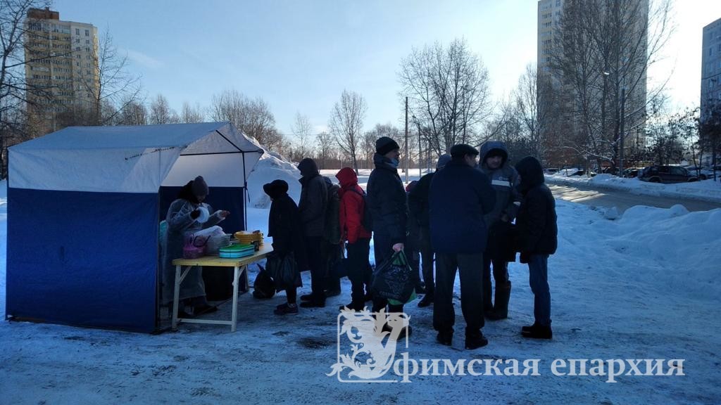 А в воскресенье наши бездомные подопечные также не остались без внимания — помимо вкусного обеда и домашнего хлеба каждому вручили сладкий подарок — мы заметили, как они любят полакомиться и всегда ждут к чаю конфеты, поэтому в этот раз на праздник решили порадовать их именно так. В этот раз пришло покушать 23 человека.