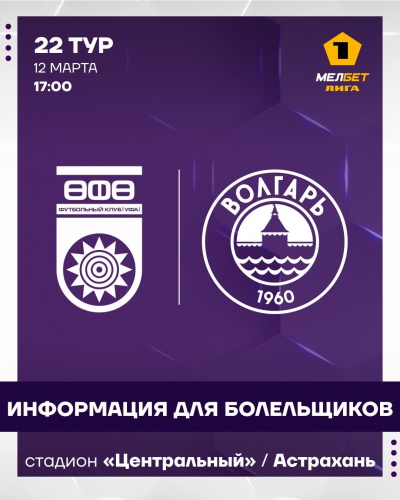 Игра 22-го тура Мелбет-Первой Лиги состоится в Астрахани на стадионе «Центральный» в 17.00 [по Уфе].Билеты на сектор уфимцев – бесплатные.