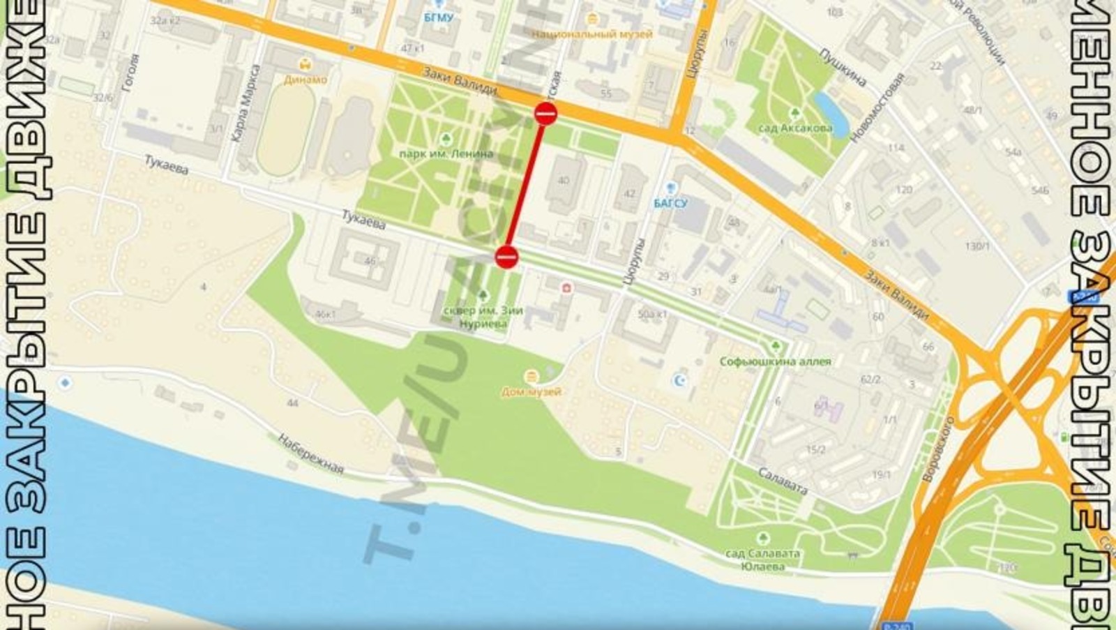 В Уфе временно перекроют участки улиц Набережной и Советской