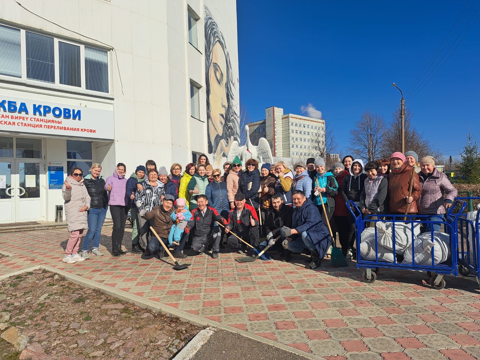 На территории ГБУЗ Республиканская станция переливания крови прошёл апрельский субботник. Уборка и благоустройство территории начались с раннего утра.