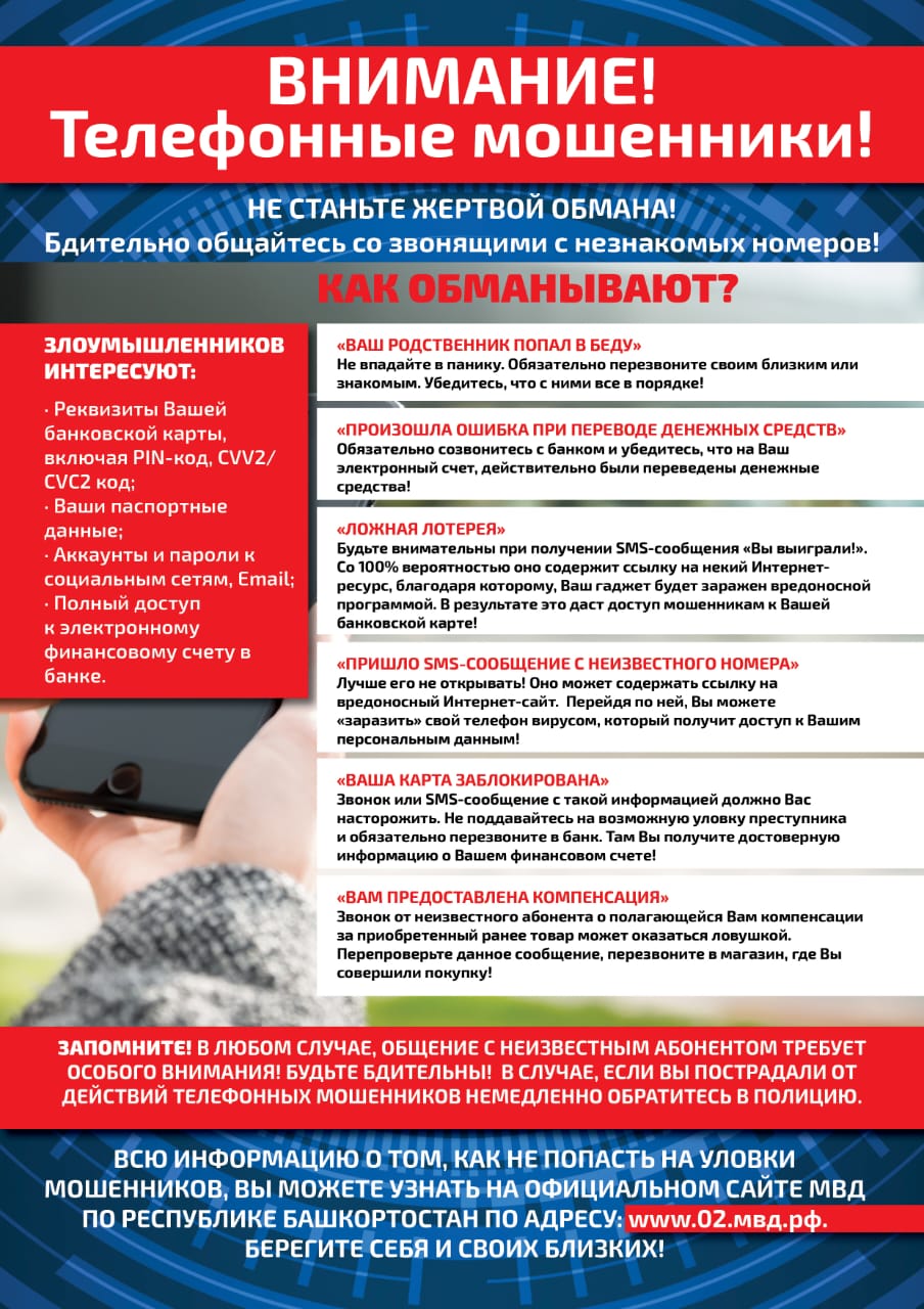 Что делать, если звонит мошенник? Рекомендуем осторожно коммуницировать при звонках с любых незнакомых номеров. Важно не поддаваться на уговоры и манипуляции и ни в коем случае не делать никаких переводов или платежей! Будьте бдительны!